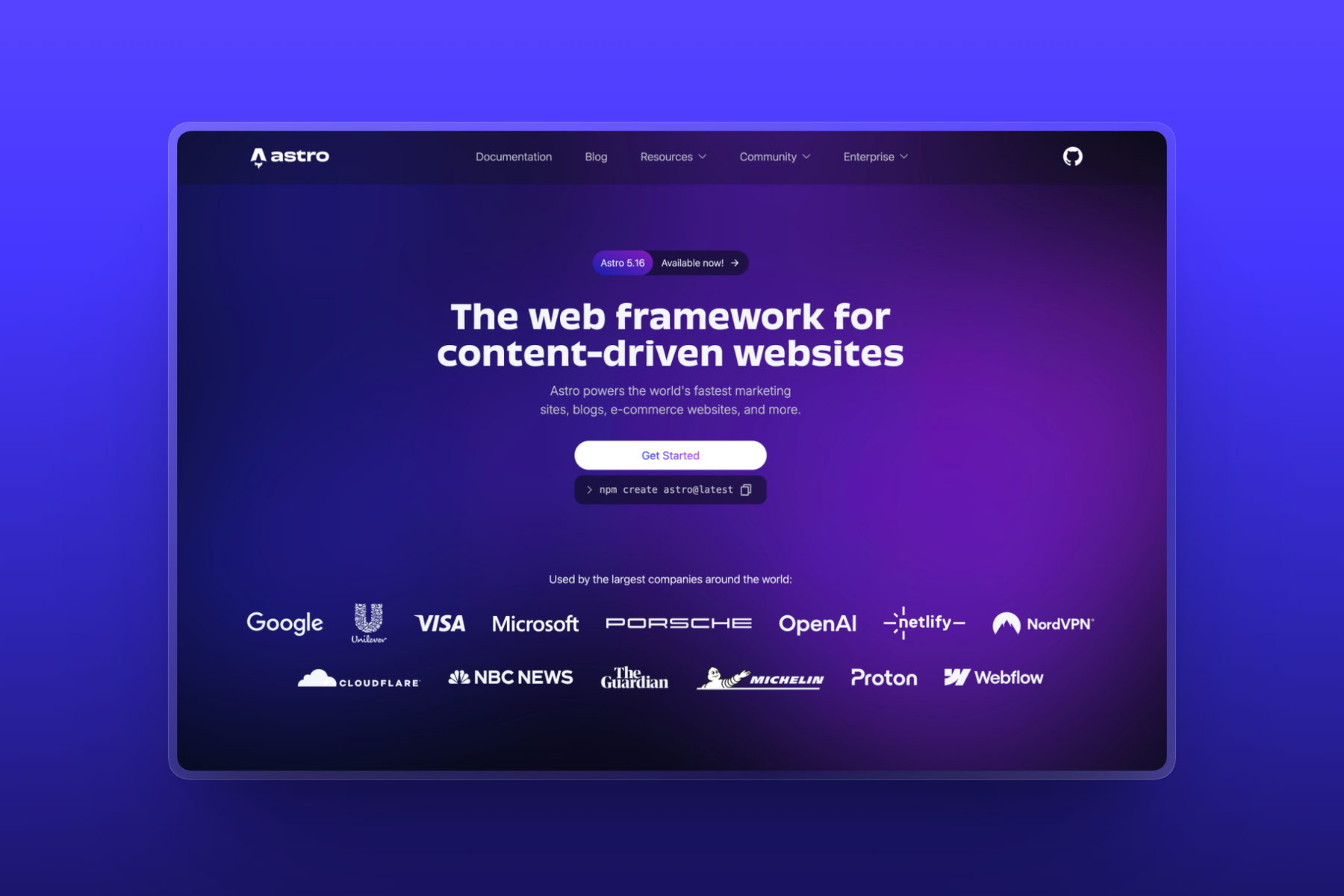 The site is built using Astro, chosen for its static-first rendering model and minimal JavaScript footprint.