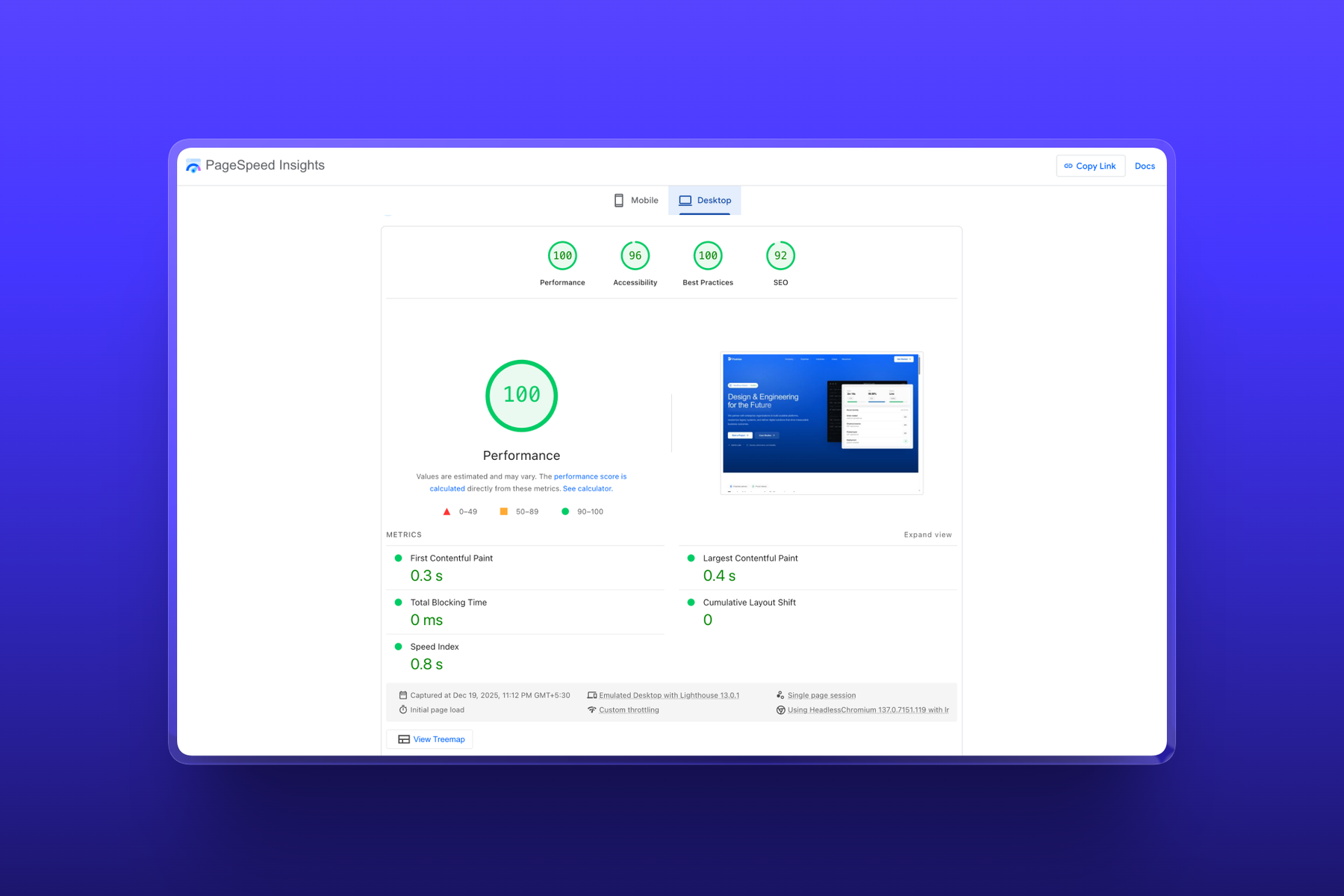 This approach ensures extremely fast initial load times, predictable performance, reduced attack surface, and long-term maintainability.
