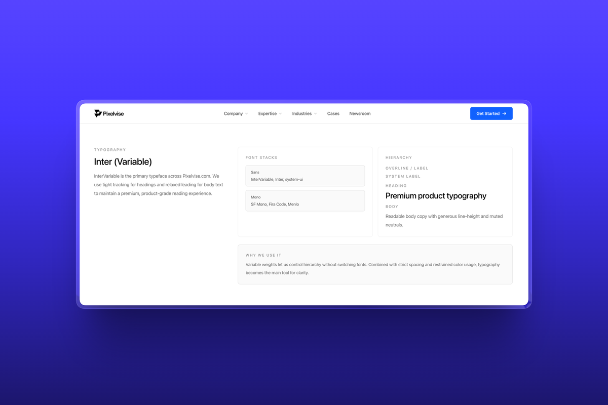 Pixelvise.com uses Inter Variable as its primary typeface.