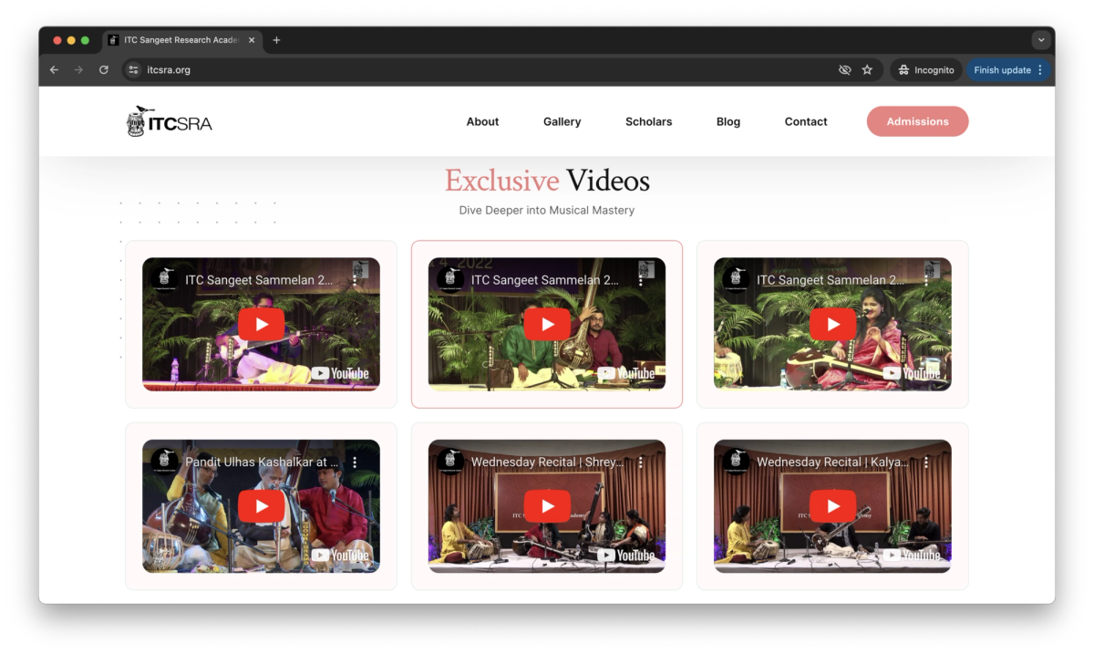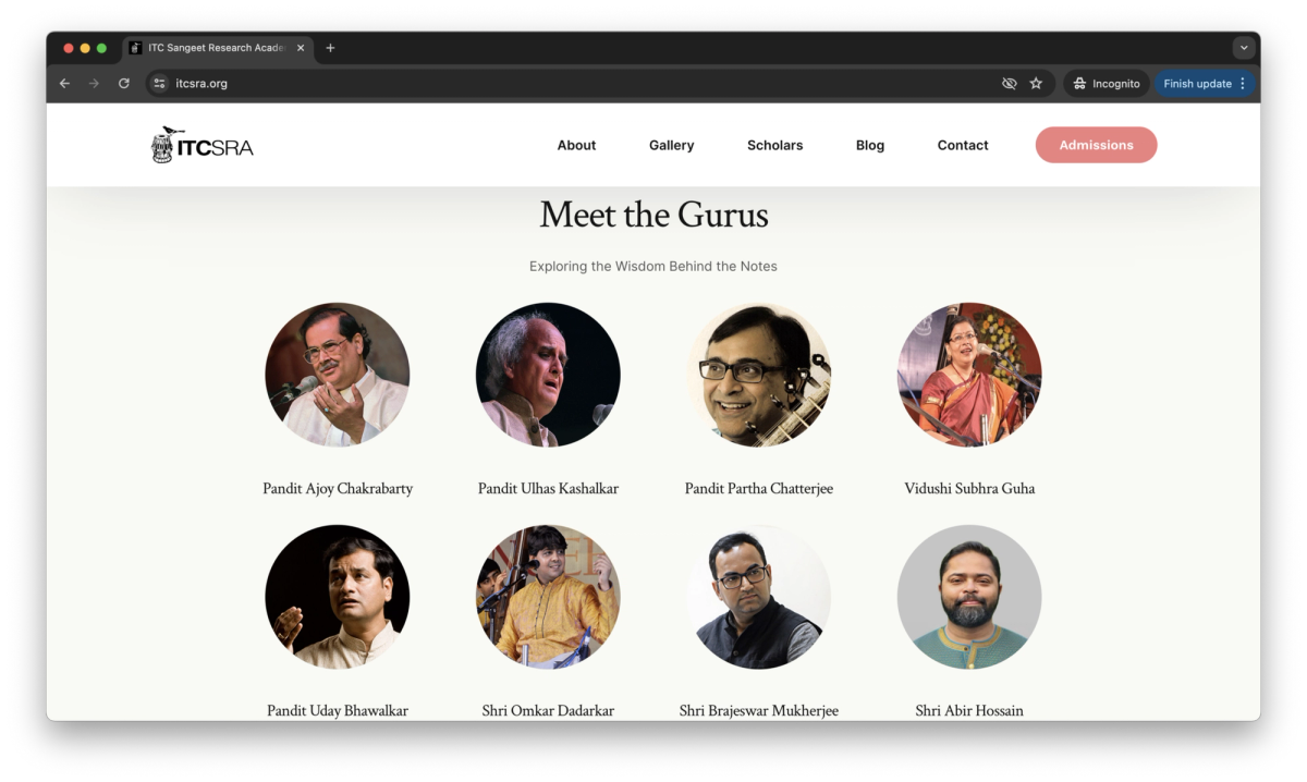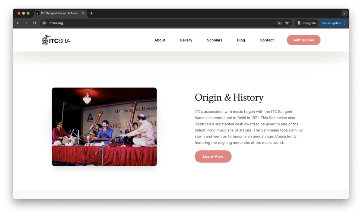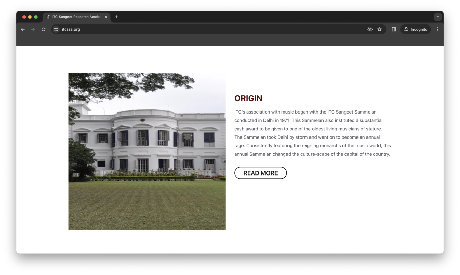 In 2024, our collaboration with the ITC Sangeet Research Academy (ITCSRA) presented an exciting opportunity to reimagine their digital presence.